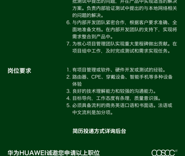 运营商产品验证的后续项目。协助项目经理收集有用的信息,以建立启动会议。在项目过程中,维护任务状态,并与研发进行跟踪,以解决并按时交付所有需求给客户。跟进子公司进展,支持本地团队加快国家验证。